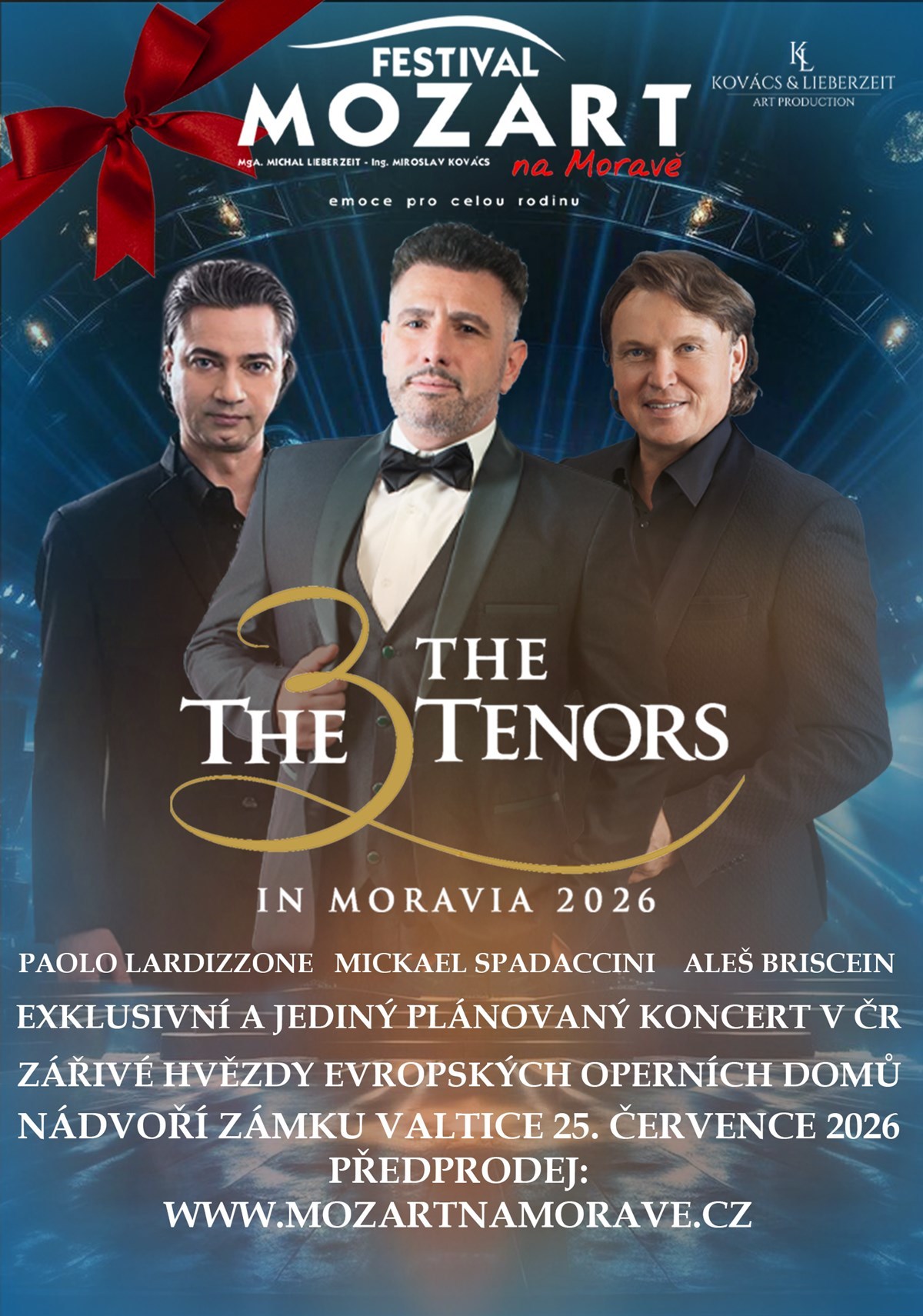 Představí se vám ve zbrusu novém koncertním projektu The Three Tenors in Moravia. Přijďte si poslechnout ty nejkrásnější tenorové hlasy současnosti.